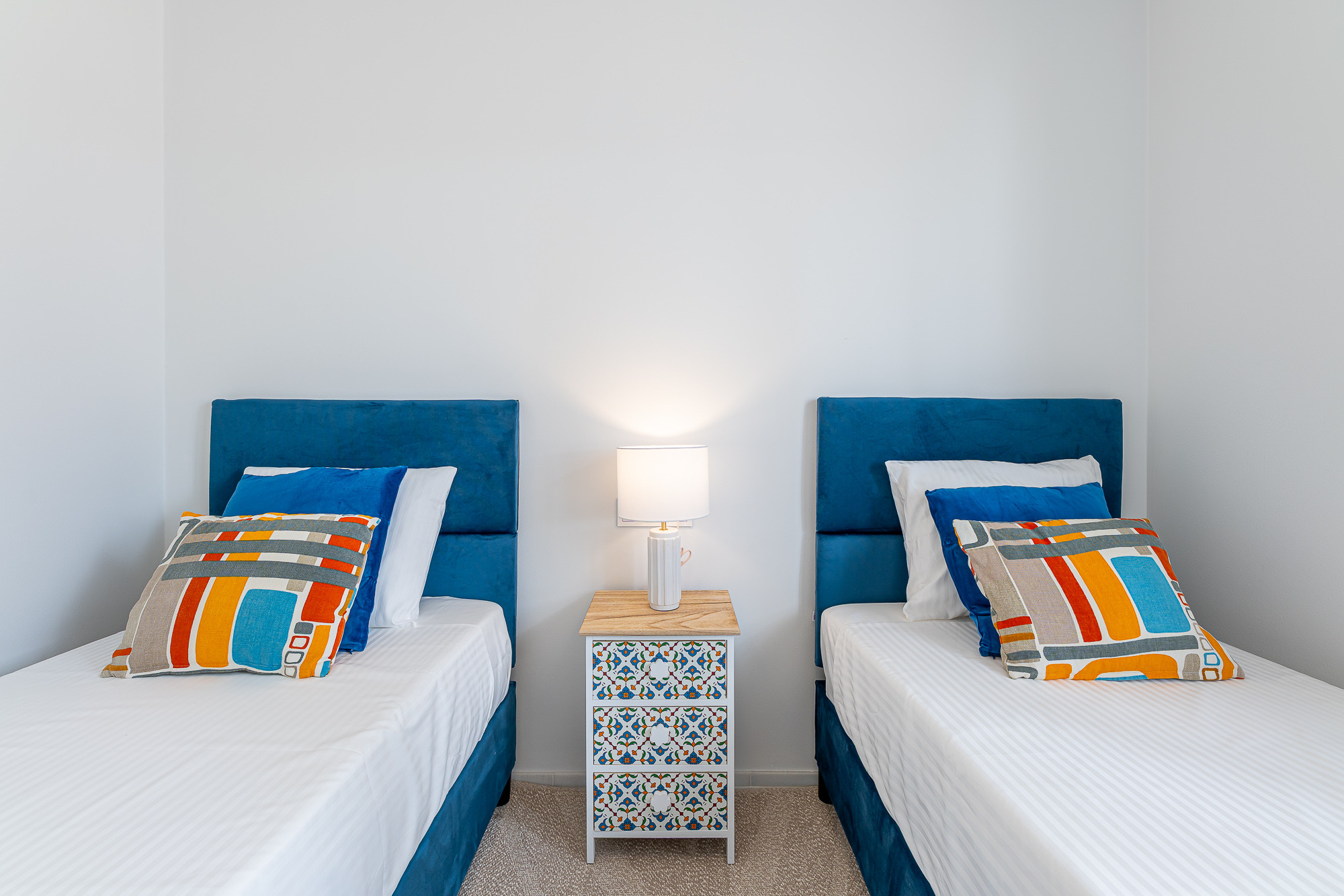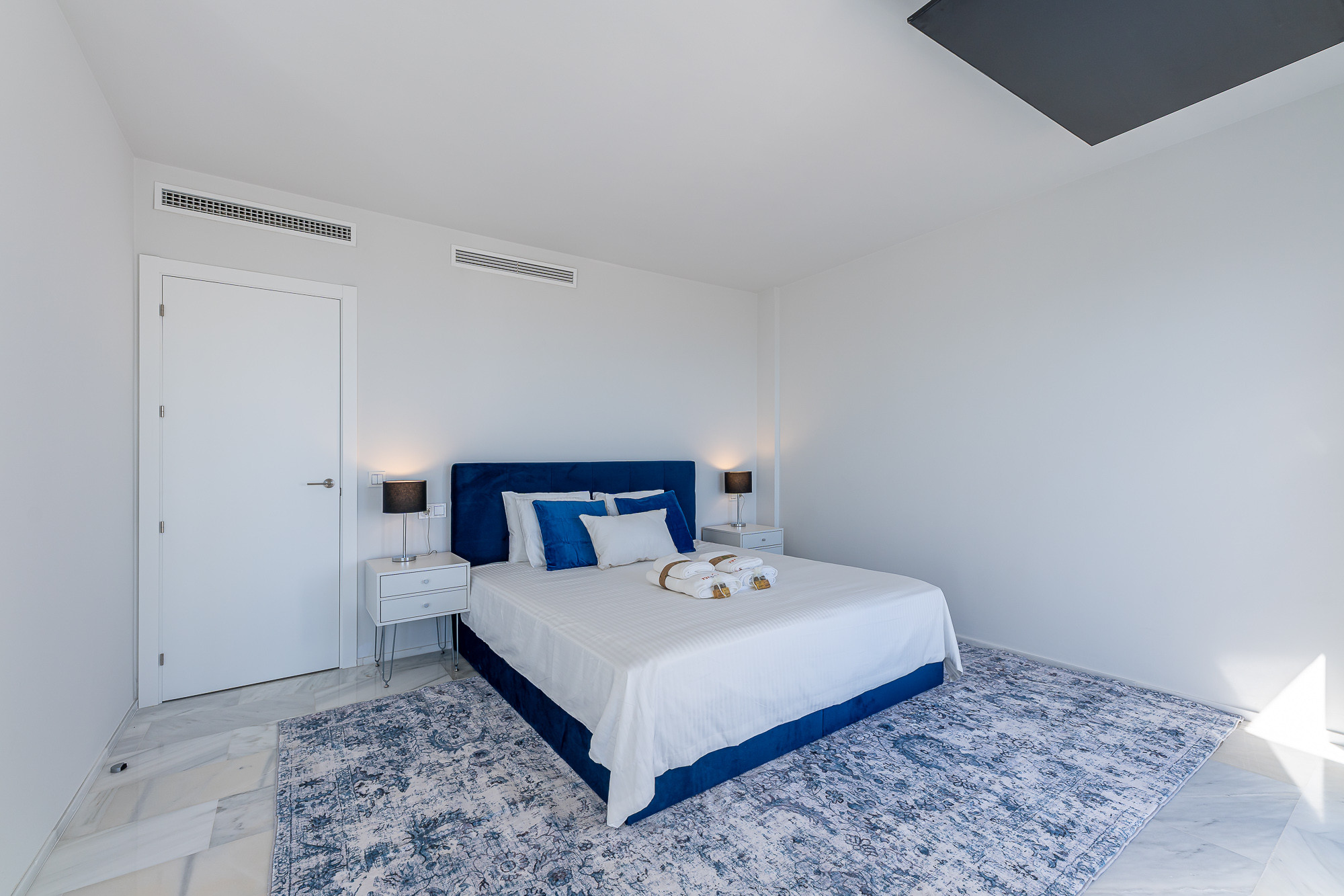 El interior cuenta con 3 dormitorios bien distribuidos: un dormitorio principal con cama matrimonial y dos habitaciones adicionales con camas individuales. La vivienda dispone de aire acondicionado y calefacción central en todas las habitaciones para mantener una temperatura ideal en cualquier época del año.