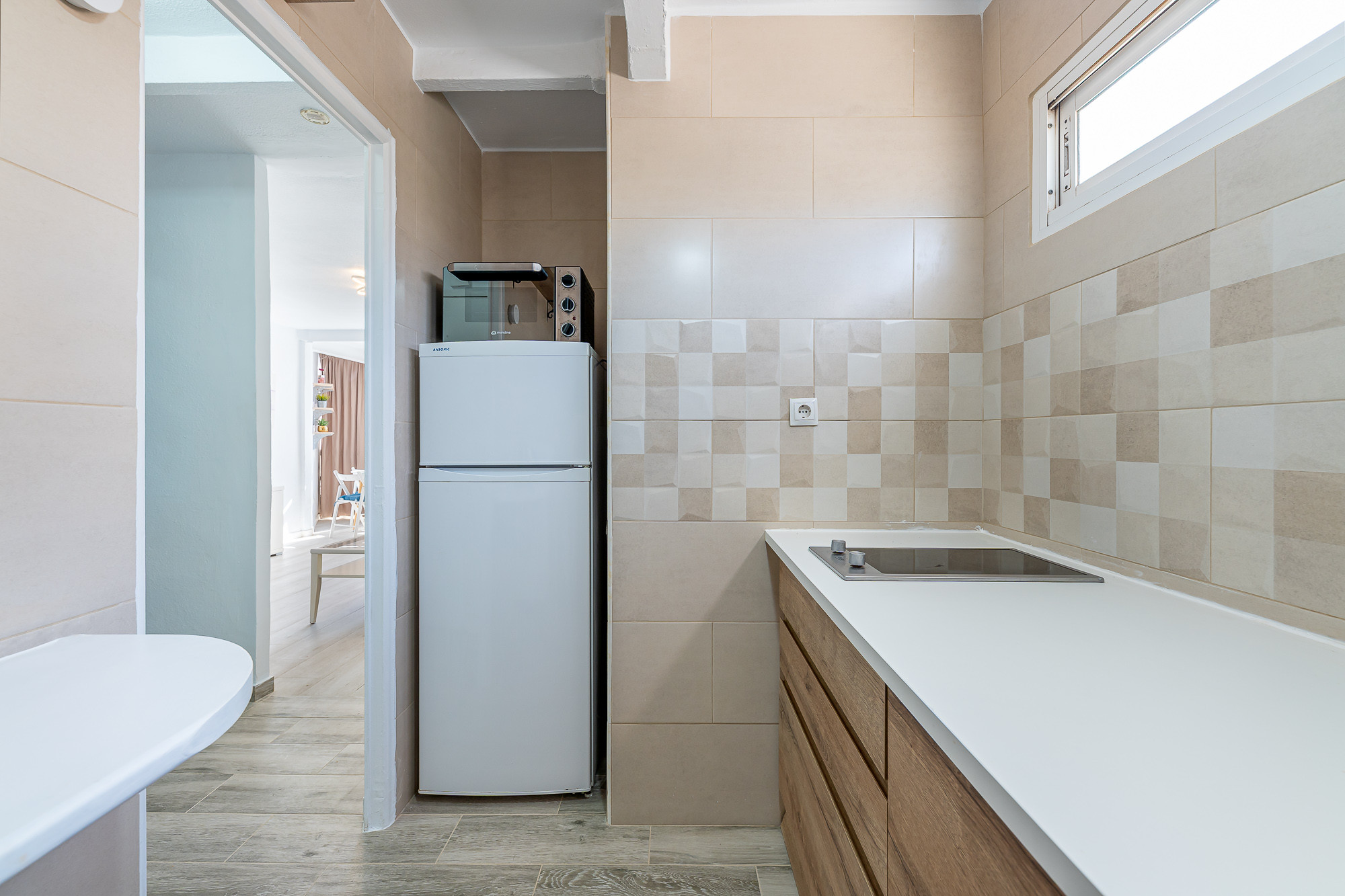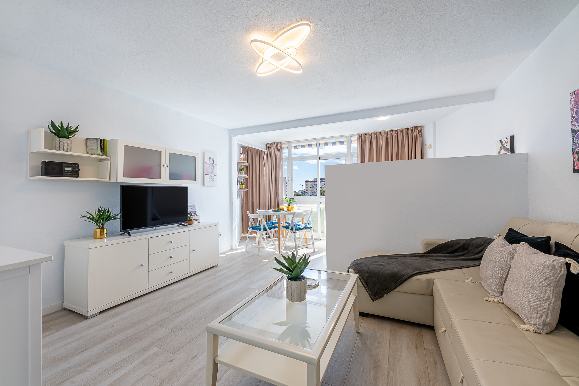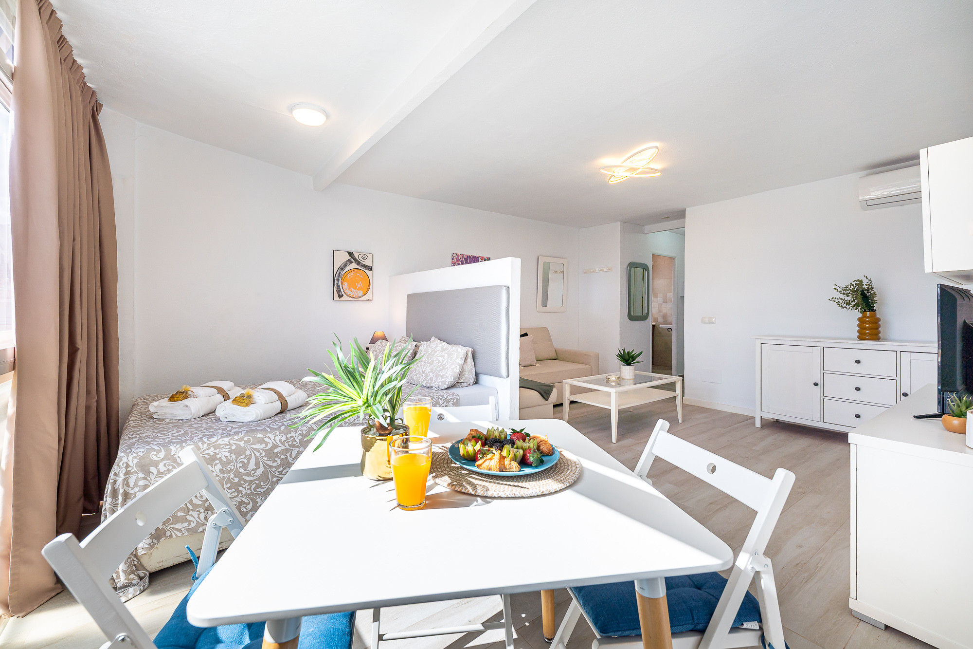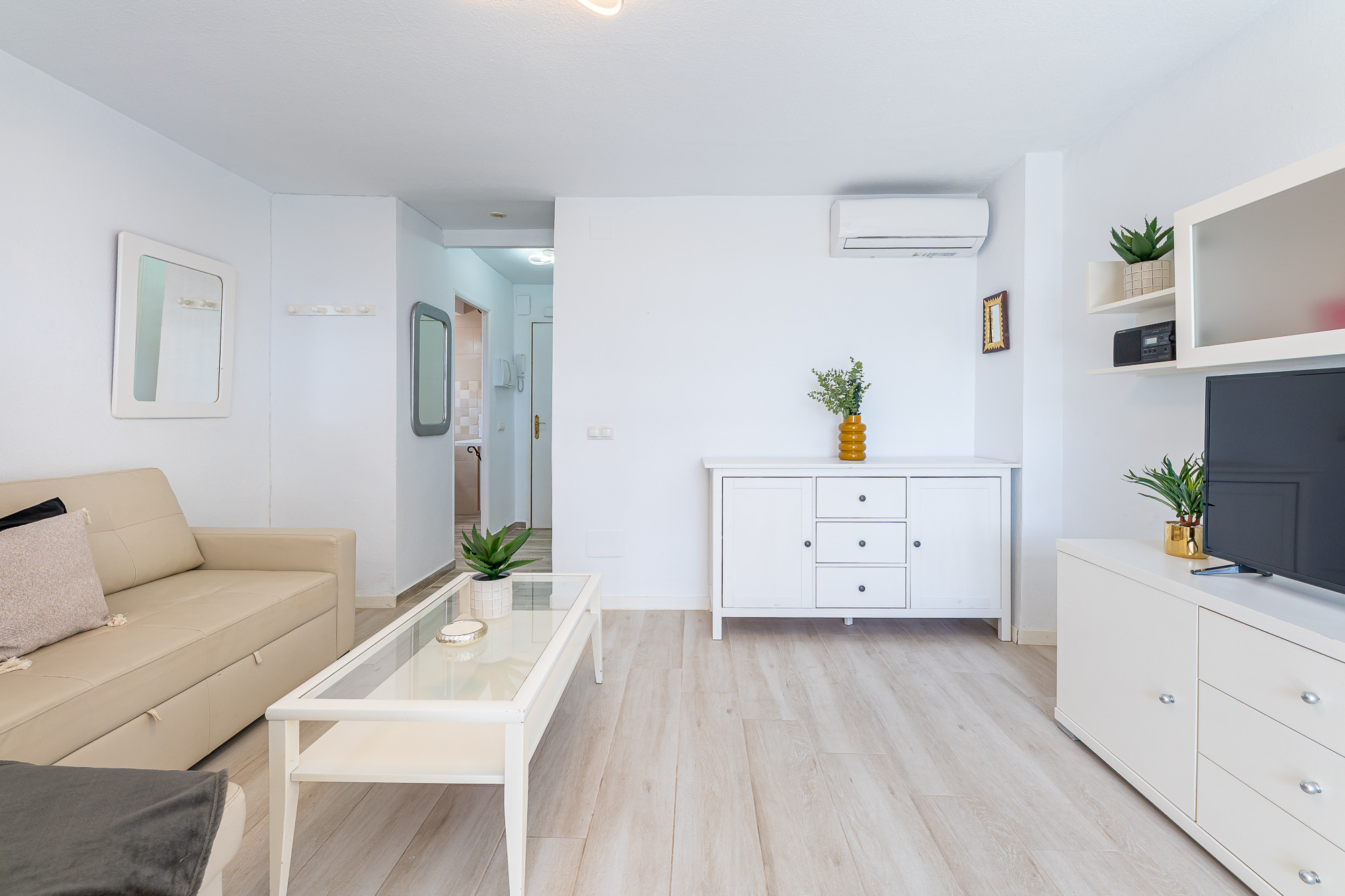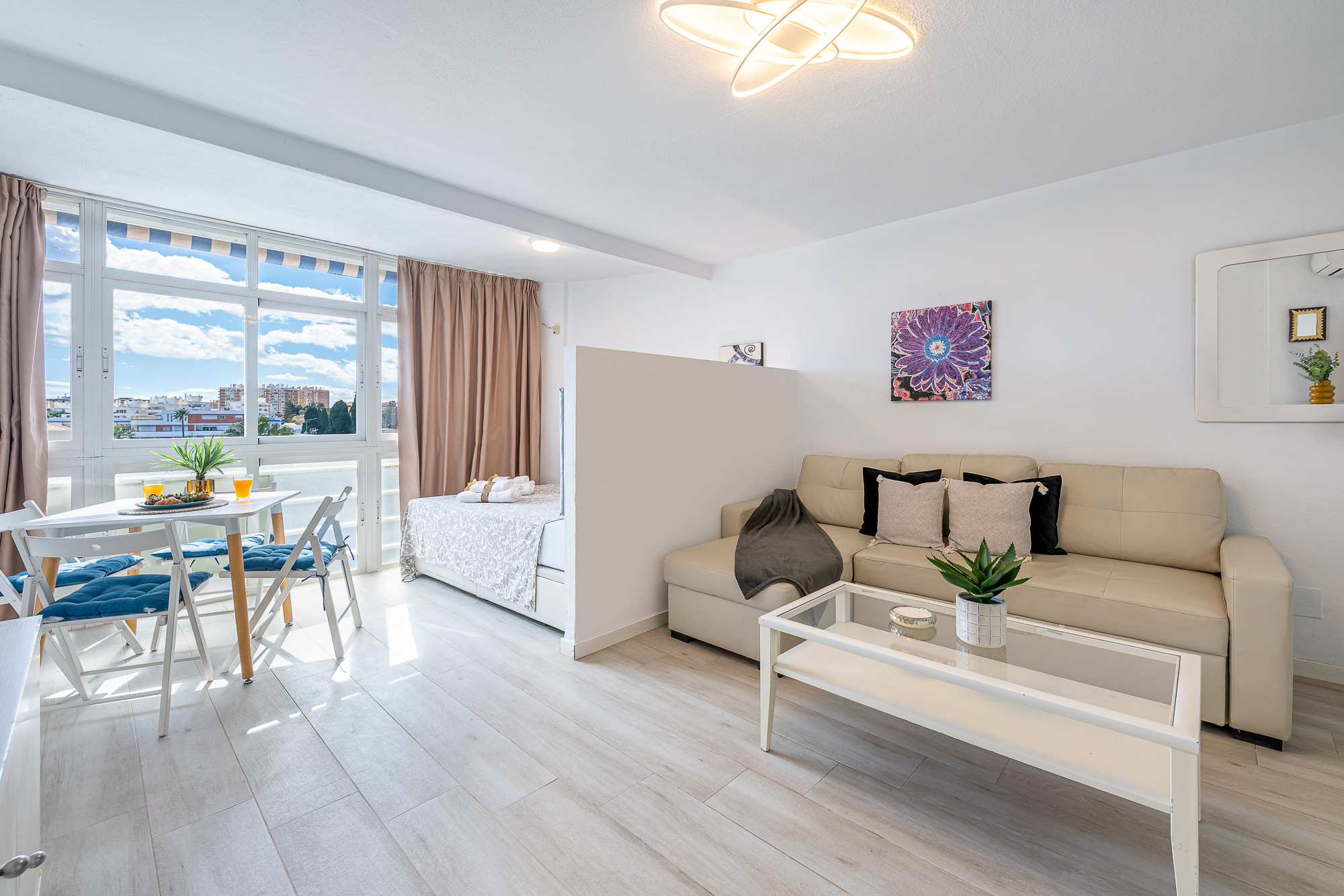 The studio has an excellent location, a short distance from the centre of Arroyo de la Miel but in a quiet residential area. It has a spacious area divided into: Kitchen, bathroom, living-dining room and a private double bed with a separation for more privacy.