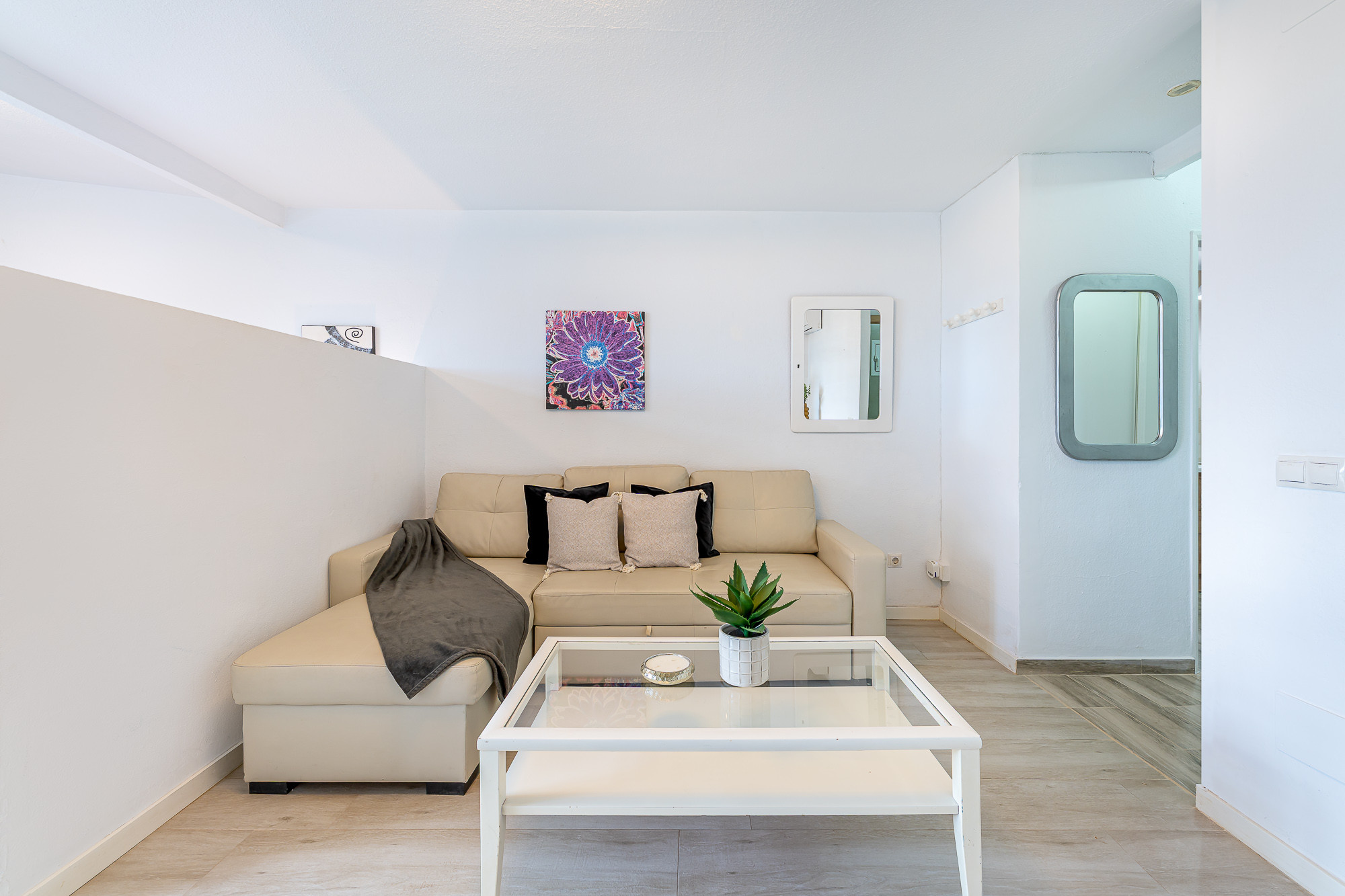 L'étude est très spacieuse, malgré le fait d'être un seul environnement, elle donne l'impression d'avoir des espaces complètement séparés, grâce à la séparation qui divise la zone du lit matrimonial du salon/salle à manger et du canapé-lit.