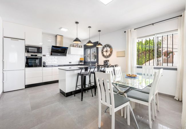 La cuisine américaine, est équipée avec réfrigérateur, micro-ondes et four.